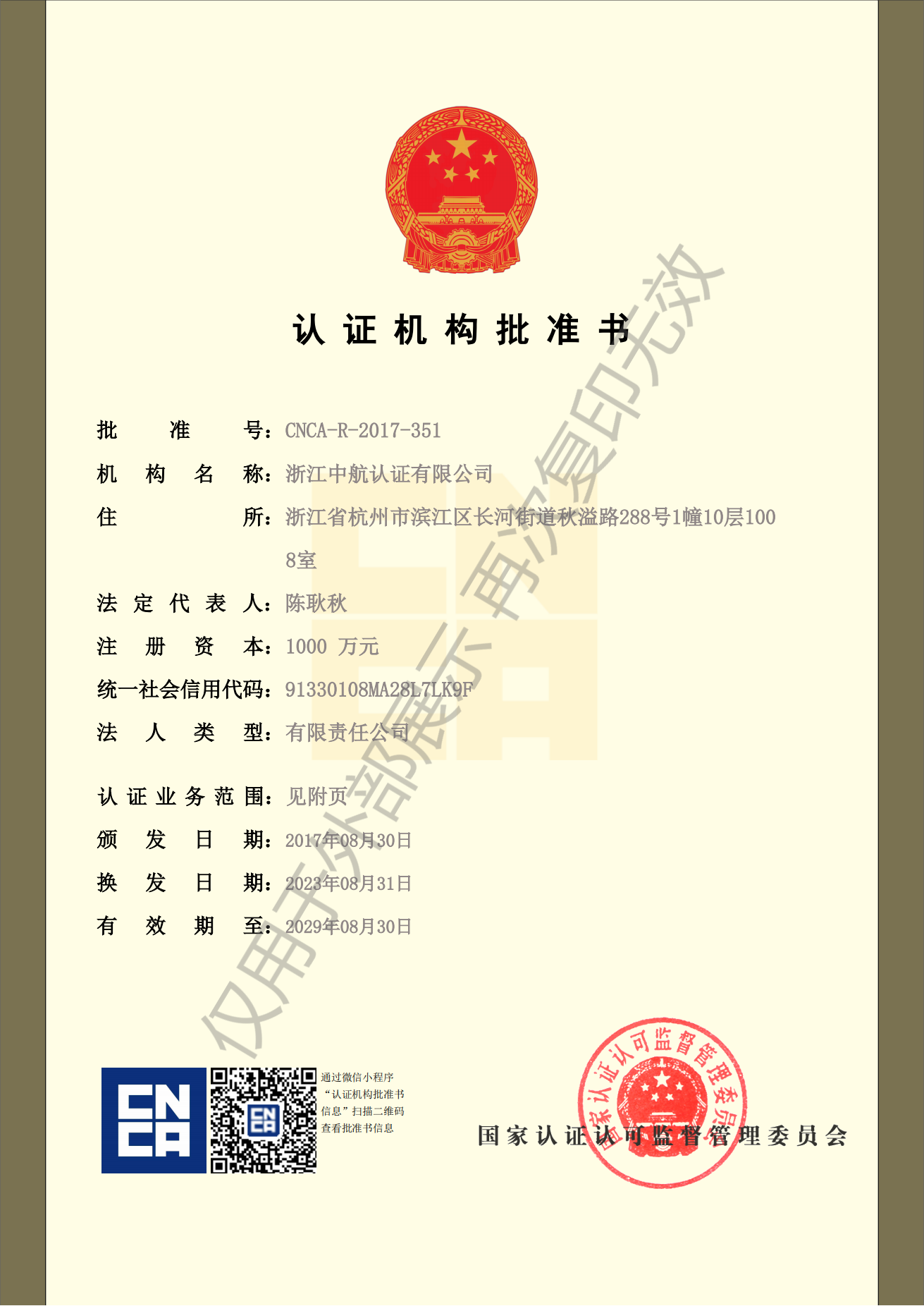 新闻资讯+查看更多 尚德守法 共享食安2025-09-30 浙江中航认证有限公司成功完成 食品企业良好生产规范(GMP)认证审核2024-10-16 热烈庆祝我司获“国家高新技术企业”认证殊荣2024-01-12 喜讯!中航认证获浙江省“守合同重信用”企业荣誉称号2023-12-22 “食”战演练 中航认证全力保障亚运食品安全2023-09-01 中航认证再度中标,持续为亚运会食品安全助力护航!2023-08-04 公开文件+查看更多 MSCR56 设施管理体系认证证书2025-11-27 公正性声明2025-11-13 MSCR52 绿色工厂管理体系认证证书2025-09-17 MSCR51 绿色供应链管理体系认证证书2025-09-17 MSCR46 顾客满意管理体系认证证书2025-09-17 MSCR45 企业标准化管理体系认证证书2025-09-17
